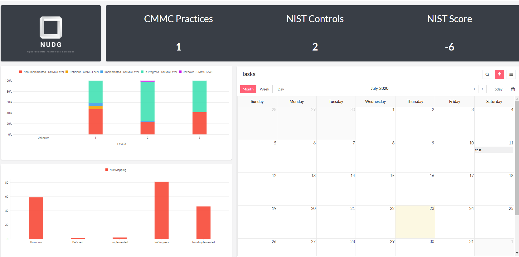 On the top you'll see completed CMMC Practices, NIST Controls, and your